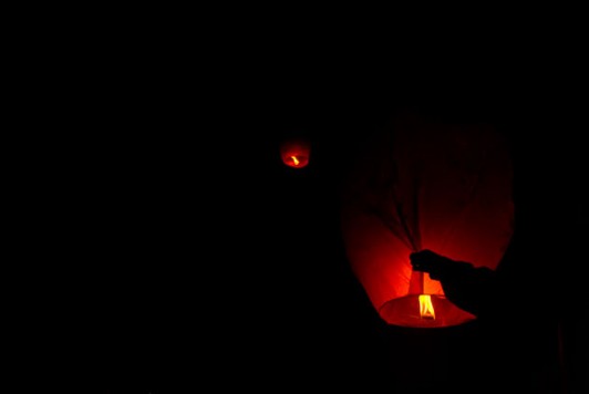 Red: Locals set paper lanterns adrift in the night sky during the annual Lantern Festival. Tainan, Taiwan