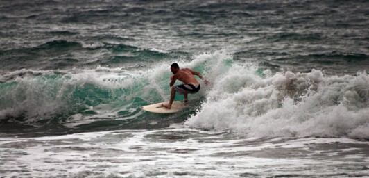 The first day I surfed despite the conditions because I had just arrived and didn’t know if I’d get another chance. I’m a relatively inexperienced sufrer and can’t read the waves very well. Despite that, I was able to paddle out (after a long exhausting struggle in the shore break) and catch one or two short rides.